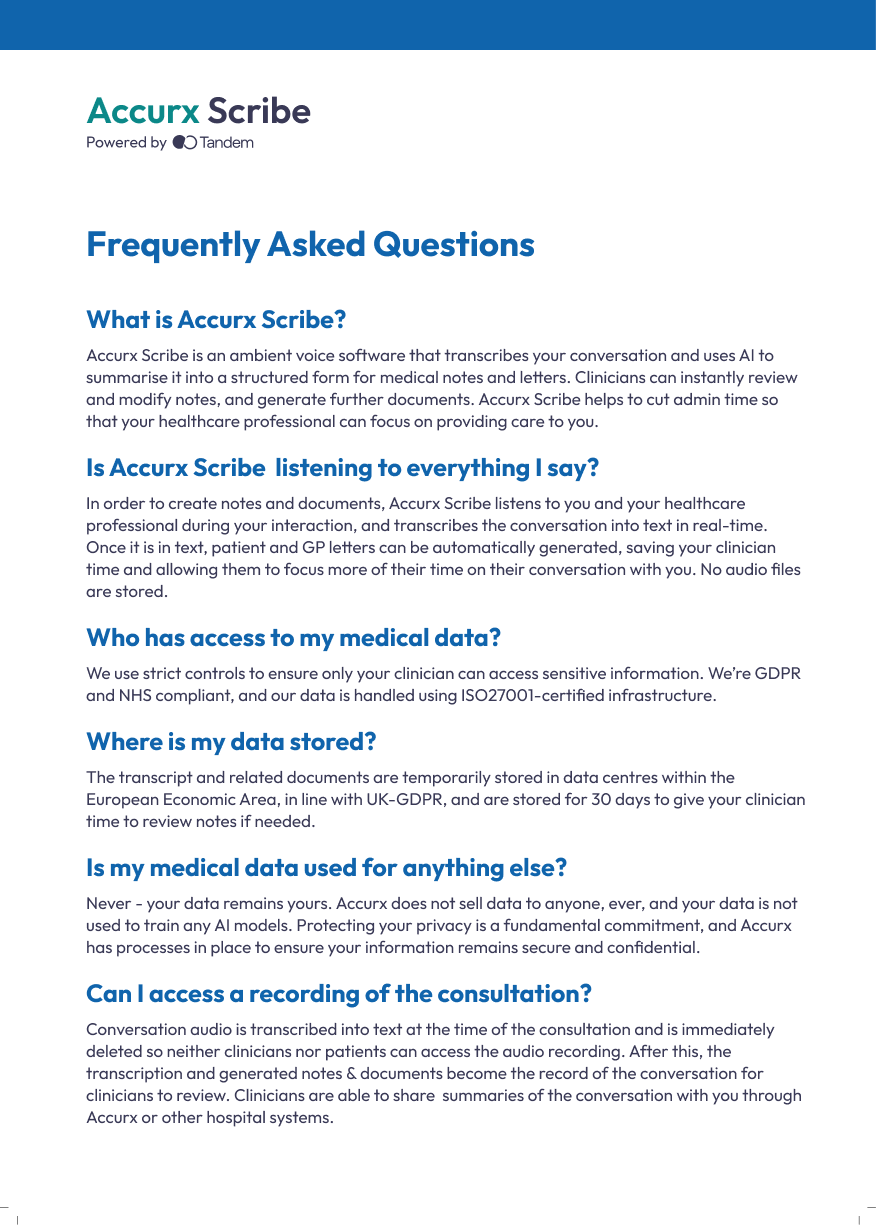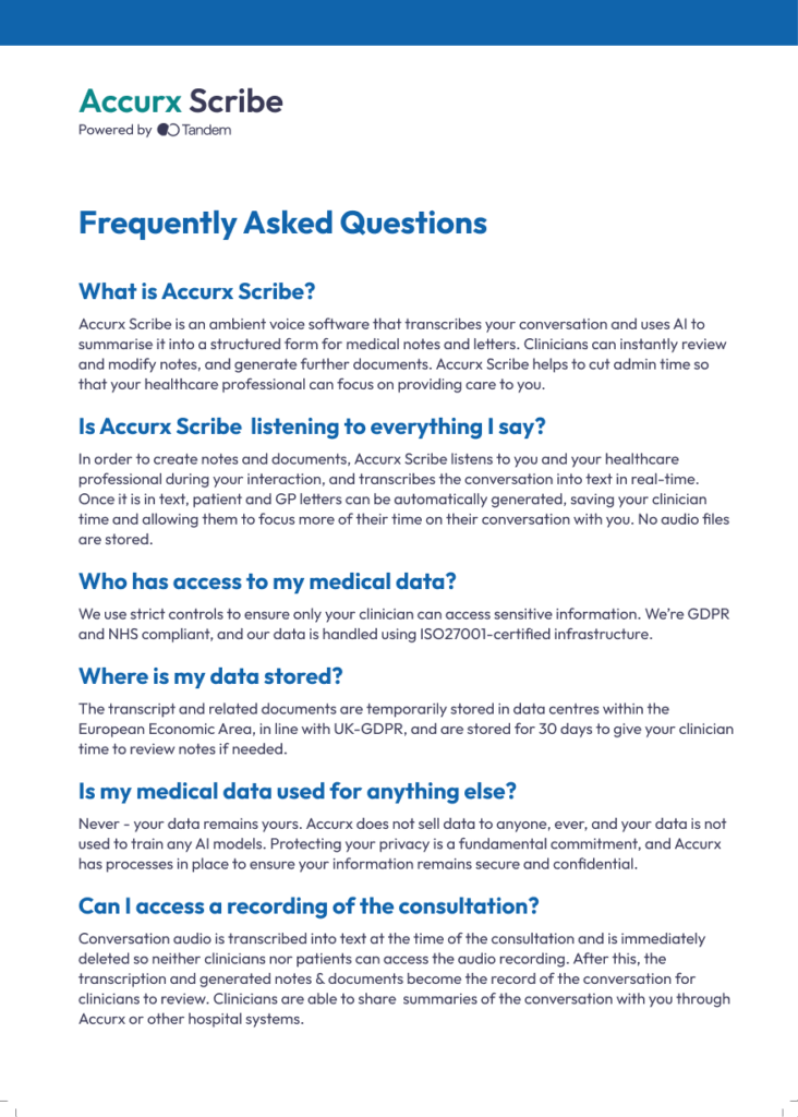 If you have any questions about Scribe please speak to the clinician at the beginning of your consultation
